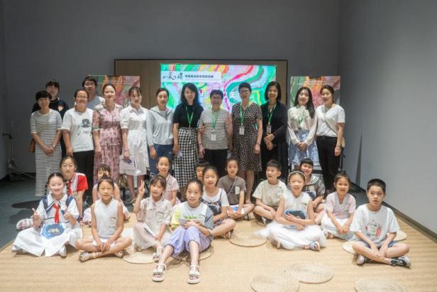 本次巡展还举办了以“绘声绘色、以美育人”为主题的绘本共读沙龙活动。沙龙活动中,中国传媒大学动画与数字艺术学院党委副书记王芯蕊老师与漯河市的小朋友们一起阅读了《小羽毛》系列原创绘本,孩子们被王芯蕊老师读讲的精彩冒险故事吸引,并一同通过朗读的方式参与绘本共读活动。此外,小朋友们还体验了绘本阅读区的趣味互动装置和绘本长卷涂鸦等活动,通过触摸、绘画等互动形式,深刻感受绘本的美感与趣味。