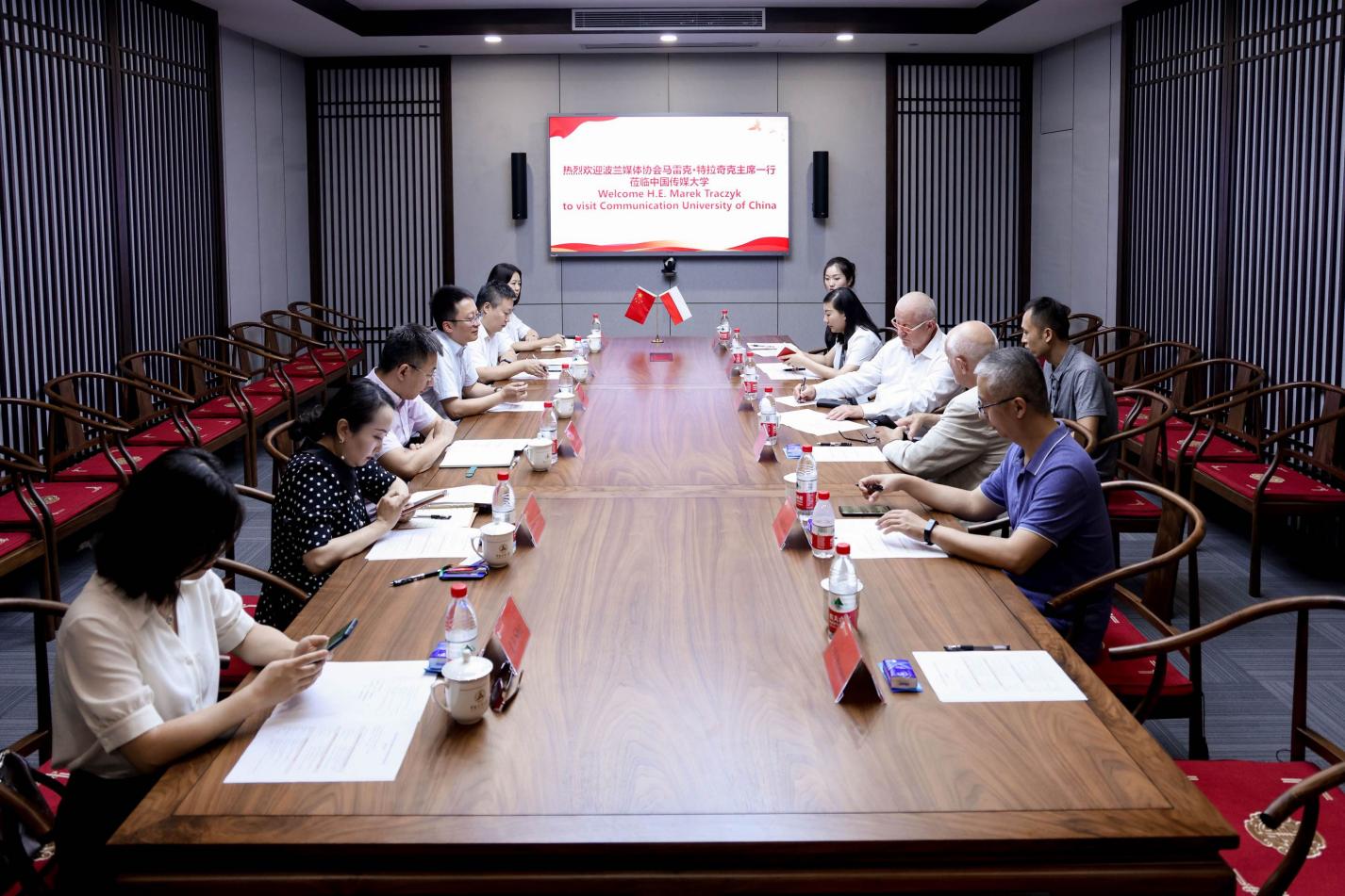 7月19日,波兰媒体协会主席兼波兰华沙商会主席马雷克·特拉奇克一行在中国记协国际部主任陈涛等陪同下来访我校。中国传媒大学副校长杨懿会见代表团,国际交流与合作处处长钟丹丹、传播研究院院长李舒、国际传播研究中心执行主任郭晓科、外国语言文化学院副院长刘颖、国家传播创新研究中心副主任张磊等参加了会见。