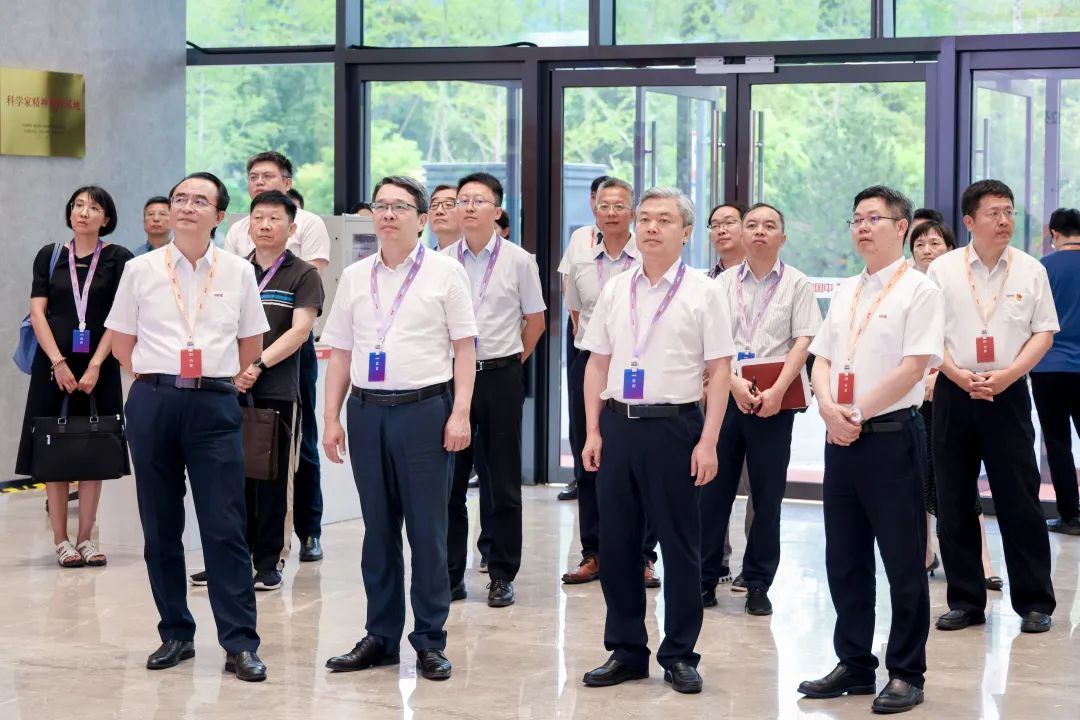 座谈交流前,廖祥忠、张树庭一行参观了中国电科智能科学园展厅,系统了解了中国电科的企业精神与文化、发展定位与布局以及在支撑国家高水平科技自立自强中作出的突出贡献。