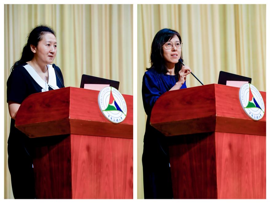 学生工作部(处)(武装部)副部(处)长樊娜为研究生新生介绍研究生奖助体系,分别从国家类奖助学金、研究生学业奖学金、社会资助类奖助学金、地方类奖学金、研究生“三助”岗位等五个方面,对研究生奖助学金评定程序、奖励标准和名额比例、发放规定等工作向同学们进行了详细说明。