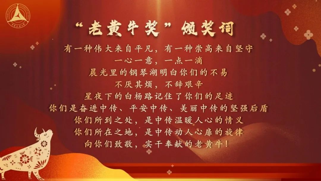 他表示,为了激发广大教职员工团结奋进、干事创业的精气神,学校创新提出设立“三牛奖”,经组织召开二十余场工作会议,先后召开十场征求意见会,制定出了奖励体系和实施办法。经各部门、单位推荐、党委常委会审议通过,最终首届“三牛奖”获奖人员及团队正式面向全校亮相。