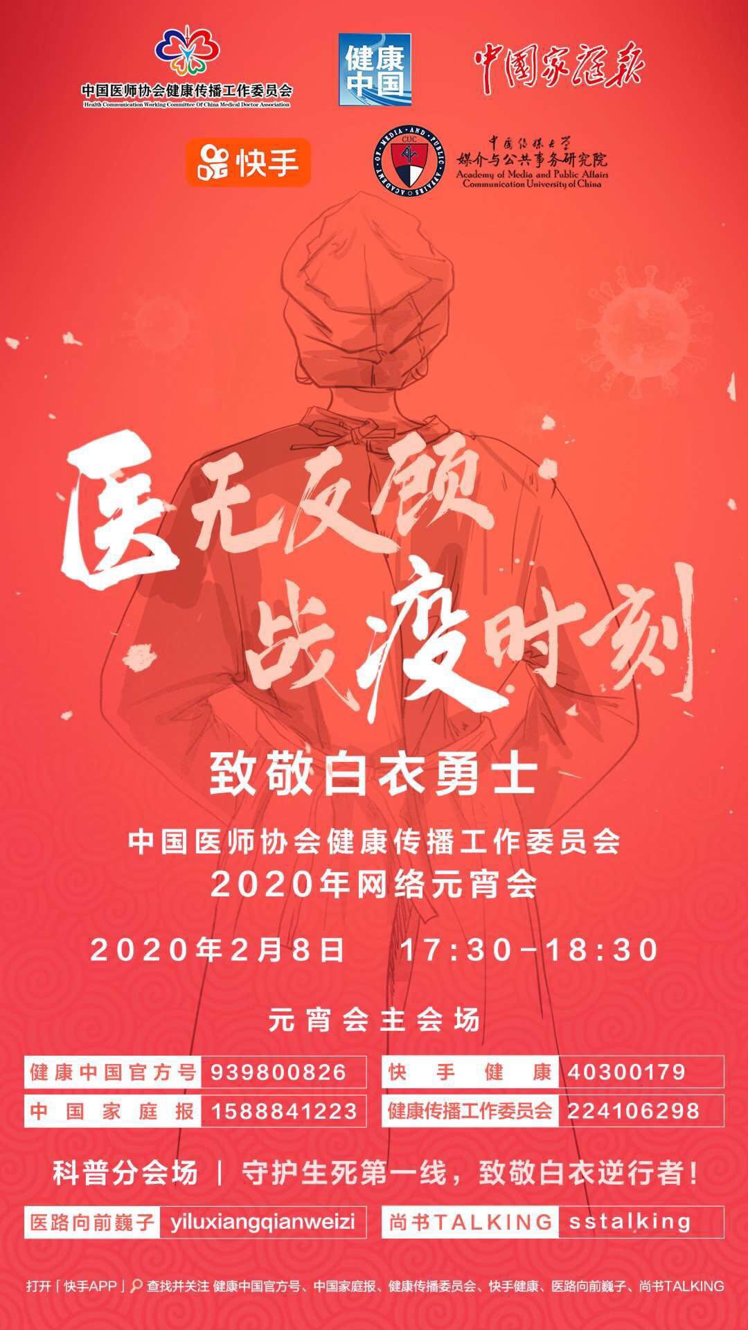 (通讯员 郐颖波)2月8日17点30分,我校媒介与公共事务研究院(挂靠政府与公共事务学院)联合中国医师协会健康传播工作委员会、“健康中国”新媒体平台、中国家庭报、快手、央视频,推出“医”无反顾、战“疫”时刻...