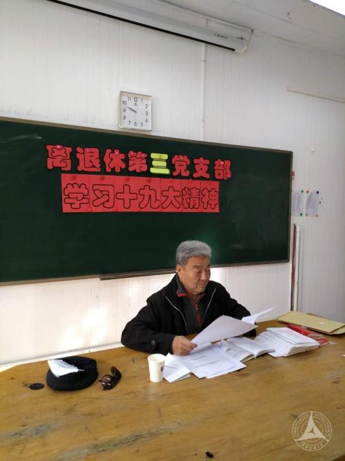 但是,离退休党员队伍又是一个特殊的群体,其中有不少老、弱、病等行动不便者,不能强求一律聚集到支部过组织生活。对于这些老党员同志我们支部一般采取以自学为主与集体过组织生活相结合的方法。如在十九大召开期间,我们支部采取组织集中收看与分散收看相结合的方式,做到了支部每个党员都能收听收看,并通过座谈、微信或电话沟通的方式交流学习感受,保证了学习效果。